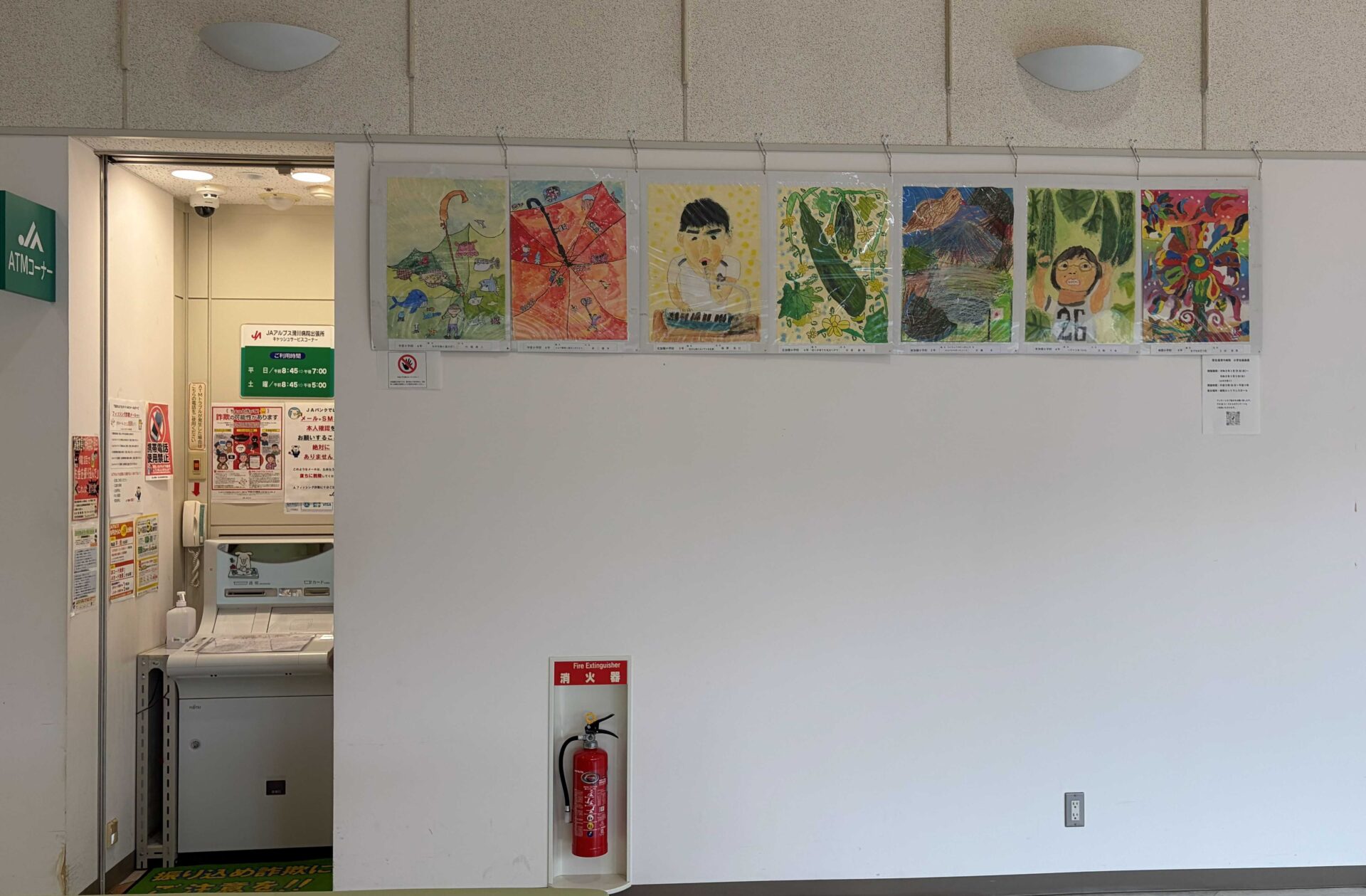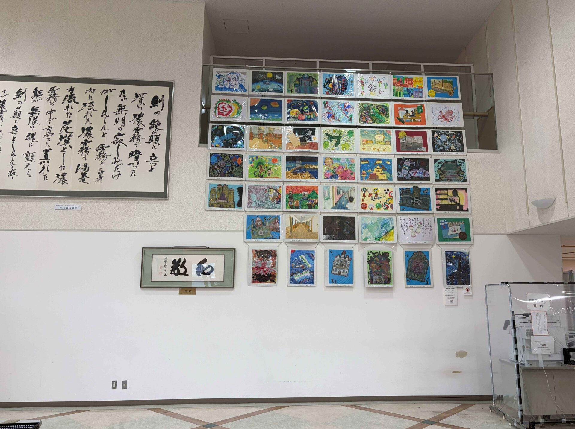 市内7つの小学校から寄せらせた作品は、合計66点。色鮮やかな作品が並び、院内に明るく優しい雰囲気をもたらしていました。
